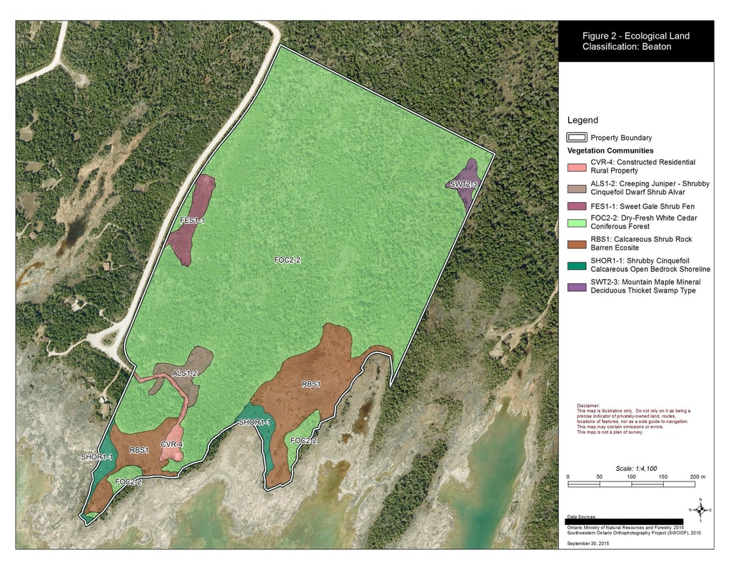 GIS (i.e., Geographic Information System) software is used to produce and analyze geospatial data, providing a tool to produce environmental maps and figures. GIS maps can be used to depict vegetation communities, ecological features, or other property features such as trails, roads, building, etc.